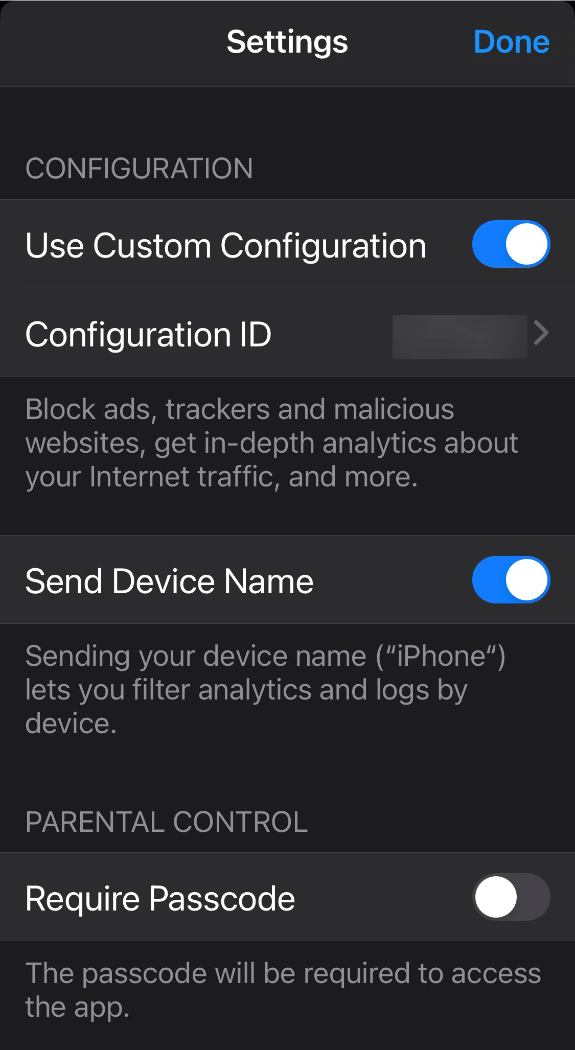 Now that I had ad blocking working on the home network, what about for mobile devices when not at home? This is where the various NextDNS apps come in. I installed the NextDNS app for iOS on our iPhones, enabled NextDNS as a proxy, and then used the profile ID in the app. Now, all traffic (cellular and WiFi) uses NextDNS so no more ads while out of the house, definitely a plus over a local Pi-Hole! And if there’s an issue, you can just toggle the app off to go back to your cellular provider’s DNS (you can also set parental controls on the app to prevent your kids from bypassing the service).
